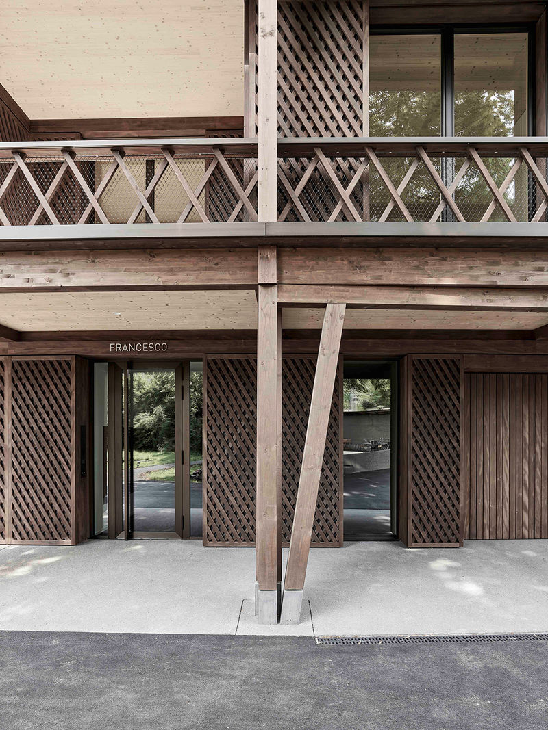 Das Projekt "Francesco" spiegelt die historische Entwicklung des Areals wider und stellt eine bewusste Hommage an die weltlichen Nutzbauten des Areals dar. Die Wahl von Holz als primäres Baumaterial und die Gestaltung der Fassadenornamente sind gezielte architektonische Entscheidungen, die eine Differenzierung zum Klosterbau betonen. Dies unterstreicht den gewünschten Kontrast zwischen der geistlichen Welt des Klosters und der profanen Funktion des Wohngebäudes.