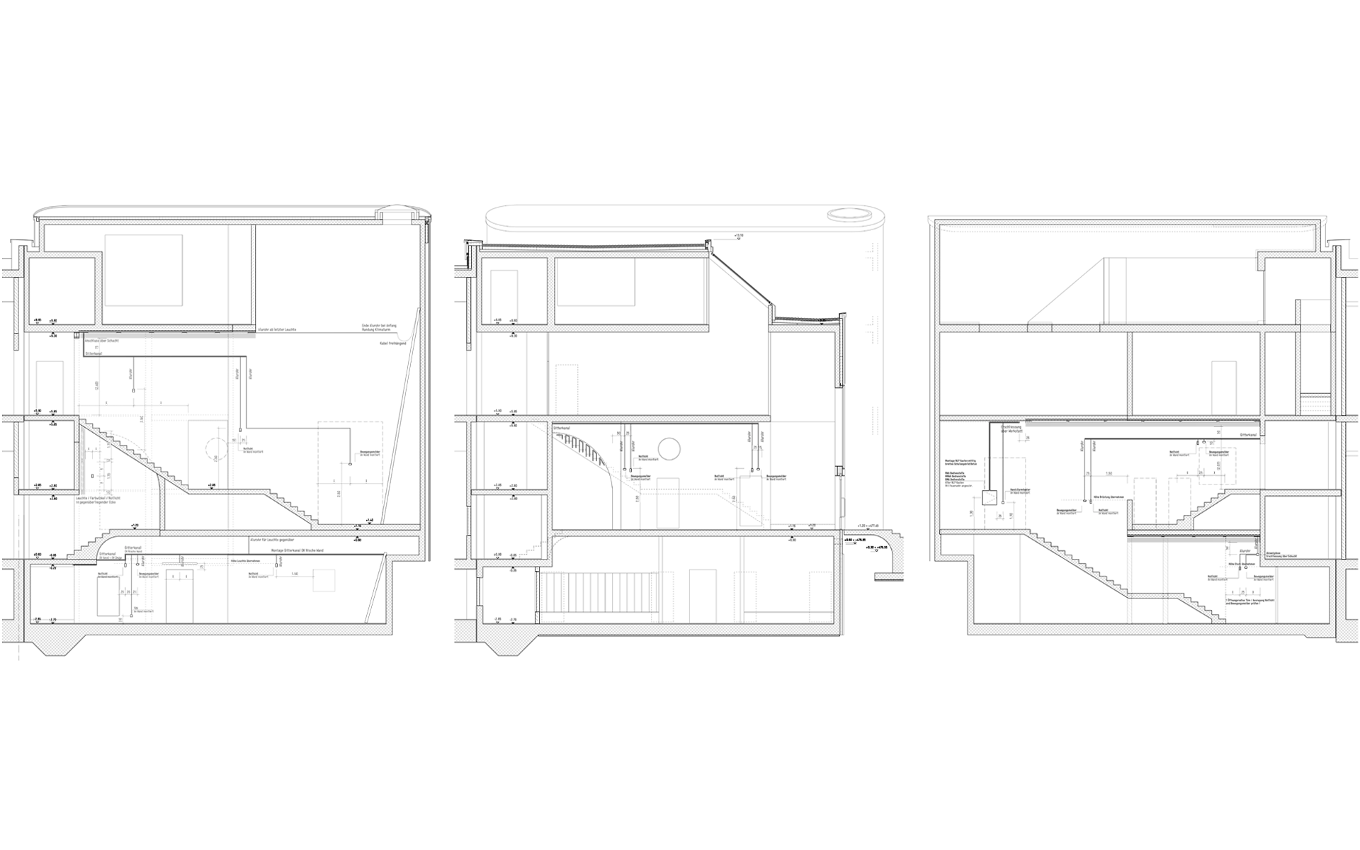 1. Die Gebäudehülle wird für Nutzungen geöffnet und energetisch saniert, wobei Ihr spezifischer Charakter mit analogen Elementen ergänzt und pointiert wird. 2. Neue Erschliessungsachsen sowohl im Aussenraum als auch in den Hallen zonieren, verbinden und organisieren die variabel einteilbaren Nutzflächen. 3. Der Klimaturm II wird zum neuen Eingang und sozialräumlichen Zentrum des divers genutzten Gebäudes. Die Treppen verbinden die Längskorridore, die ins Technikgeschoss eingebaute Parkgarage, die Garderobe, das Sitzungszimmer und den Pausenraum für alle sowie die öffentliche Dachterrasse.