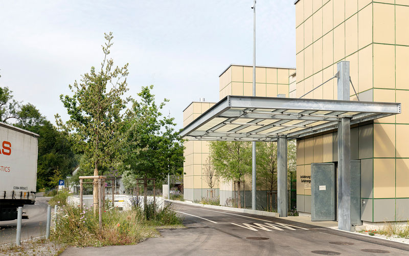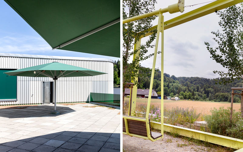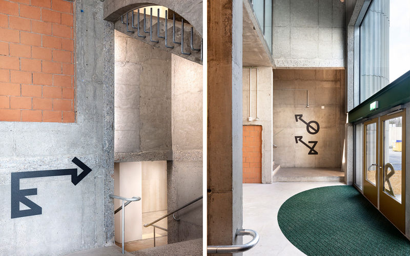Die Atmosphäre des Fabrikareals sollte bleiben. So wurden viele Elemente an Ort und Stelle weiterverwendet. Einzelne Materialien wurden auf dem Areal gesammelt und fanden eine Wiederverwendung. Fassaden- und Zementplatten, Heizkörper, Waschtröge bis hin zu Stahlprofilen, aus welchen neu zusammengefügt und verzinkt, Leuchten und die Pavillons im Freiraum konstruiert wurden.