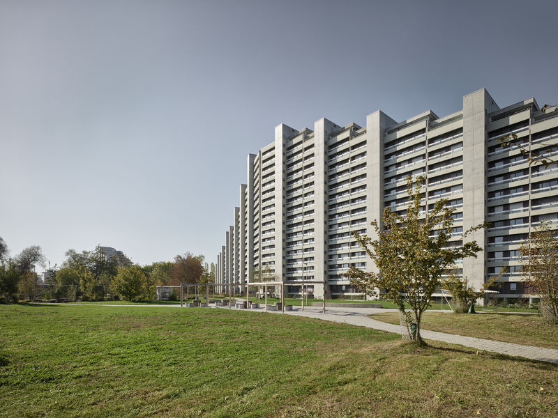 Gezielte Massnahmen an der Gebäudehülle und der Anschluss an das Fernwärmenetz ermöglichten den Erhalt der markanten Beton-Treppentürme sowie das Konzept der freien Fensterlüftung bei gleichzeitig minimalen, technischen Installationen. Weitere Kriterien umfassten den Park mit seinen vielfältigen und naturnahen Lebensräumen für Tiere, die unterirdische Erschliessung des Individualverkehrs sowie eine Vielfalt an Wohnungstypen und die ausserordentlich gute Anbindung an die städtische Infrastruktur.
