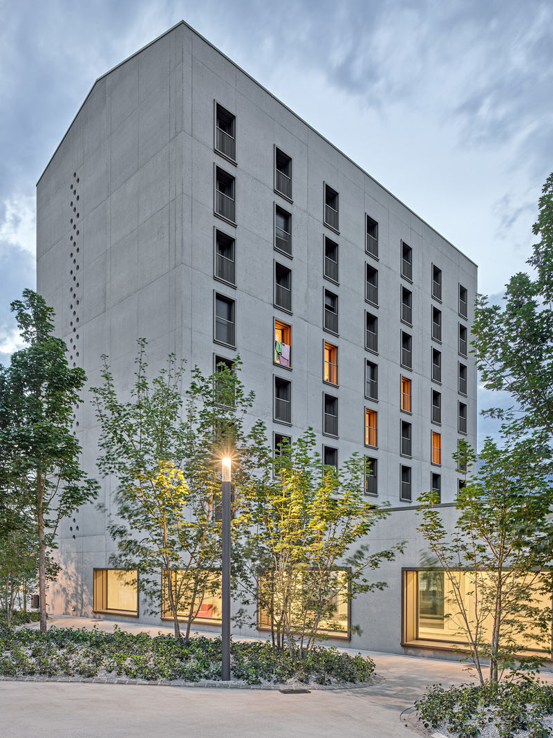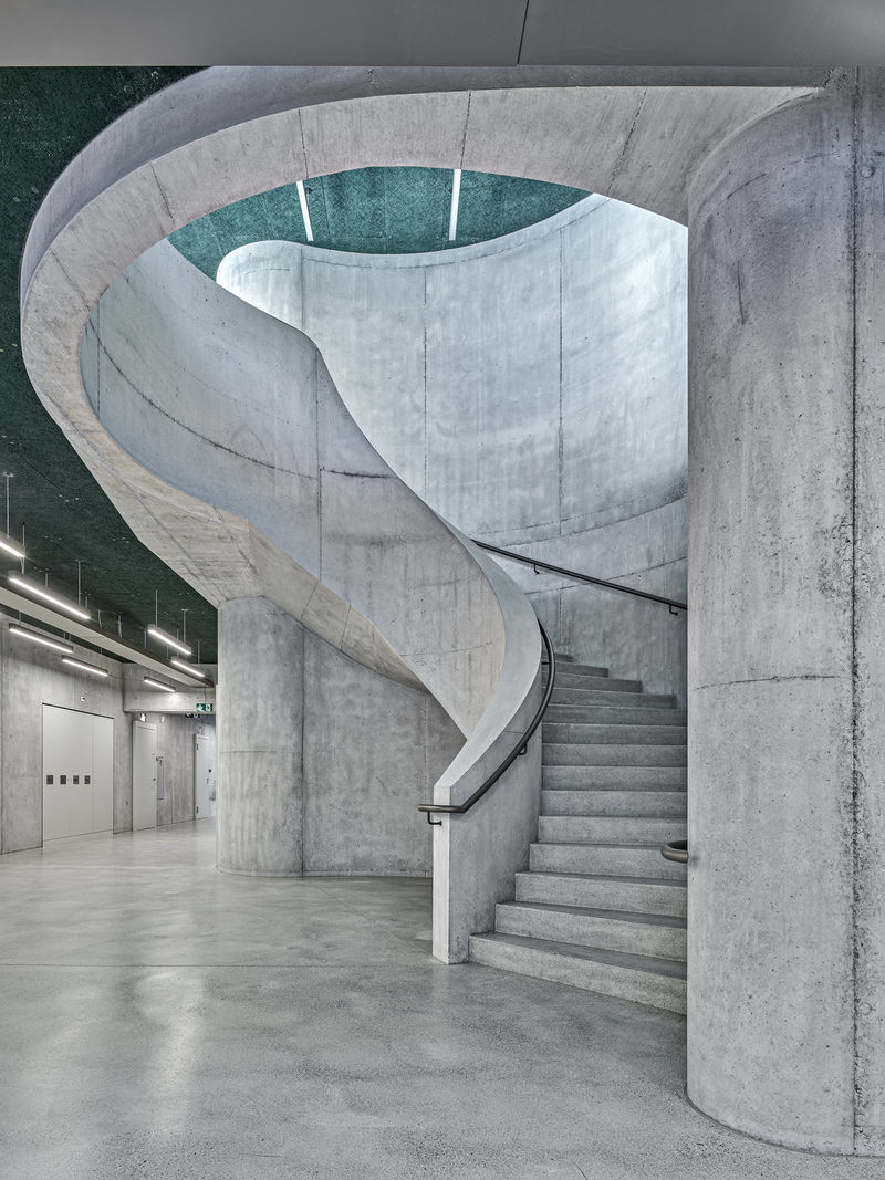 Das Erweiterungs-Projekt schafft durch die Setzung eines markanten Hochbaus an der Hangkante einen baulichen Akzent. Südseitig wird die bestehende Sporthalle als topografischer Eingriff durch die neue Sporthalle mit Werkhof ergänzt. Dies führt zu einer stärkeren Fassung des Aussenraumes und ordnet die Anlage sowohl räumlich wie funktional neu. Der neungeschossige Unterkunftstrakt wird durch einen eingeschossigen Flachbau mit dem Hauptgebäude verbunden. Dabei ordnen zwei Lichthöfe die Struktur der neuen Gemeinschafts- und Theorieräume und führen Tageslicht ins Untergeschoss. Im Bereich der Sporthallen werden zwei weitere Lichthöfe gesetzt, welche an der Schnittstelle von Alt- und Neubau Tageslicht spenden. Davon ausgehend entwickelt sich die Sporthalle mit den längsseitig angeordneten Nebenräumen über drei Etagen und findet im Werkhof ihren oberen Abschluss. Durch die Setzung der beiden neuen Programmteile wird das Untergeschoss zu einem Ort der Vernetzung, der Alt und Neu verbindet.