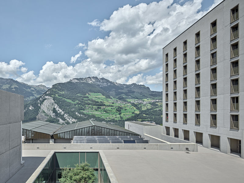 Die Lage des SZK auf der Geländeterrasse oberhalb des Walensees ist von besonderer Qualität. Der Weitblick auf die Berge kontrastiert dabei mit der Dichte und Vielfalt der gebauten Innen- und Aussenräume. Die starke Silhouette des Unterkunftstraktes wirkt zeichenhaft und trägt durch ihre Sichtbarkeit auch zur Präsenz der Institution im Landschaftskontext bei.