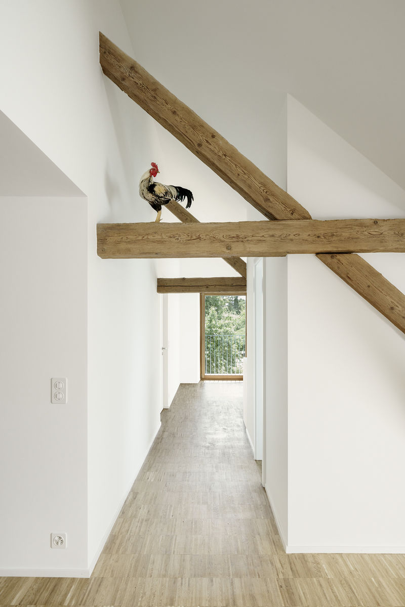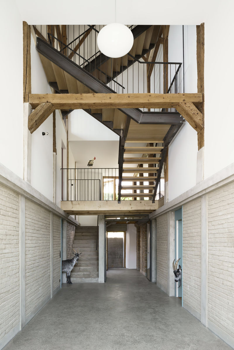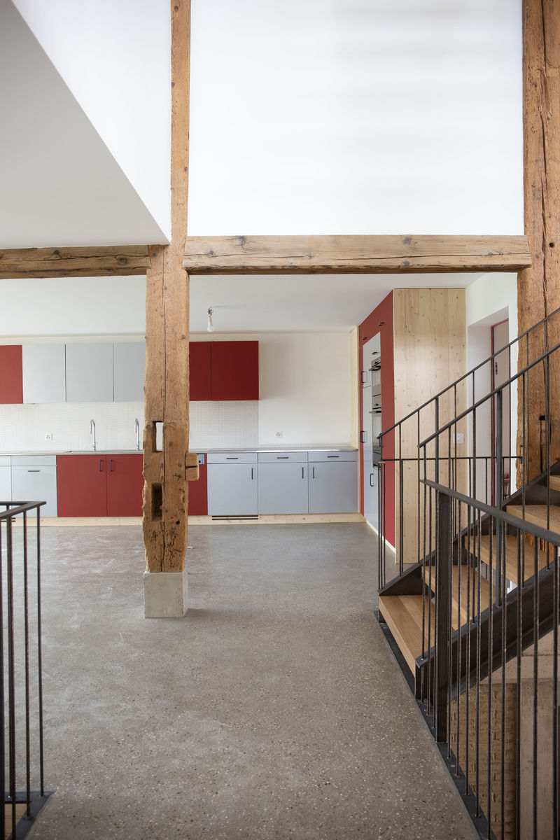 Functions follows form, le mode d’habitation de type cluster est venu de la structure de la grange. C’est après une analyse de l’existant que la typologie de cluster a semblé évidente car elle permet de transformer un bâtiment construit pour des animaux et du foin en lieu de vie pour les humains Ce changement d’utilisation radical sans changement de structure montre qu’une créativité dans l’élaboration de programmes est nécessaire pour la sauvegarde du patrimoine.