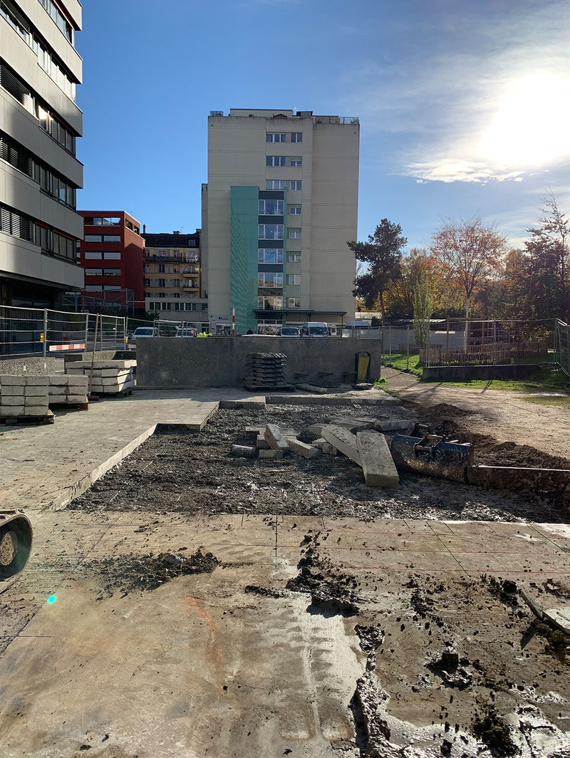 Le processus de participation initié lors du projet éphémère avait pour but d’initier des projets en faveur du vivre ensemble et du changement climatique. Ainsi le besoin d’aménagement a ciblé l’espace « ilot de chaleur » sur la dalle de parking. Le projet consiste en de larges bacs plantés et des pergolas, supports capables de générer de l’ombre et de nouveaux usages. L’accessibilité universelle est mise en œuvre sur toutes les parties de l’aménagement.