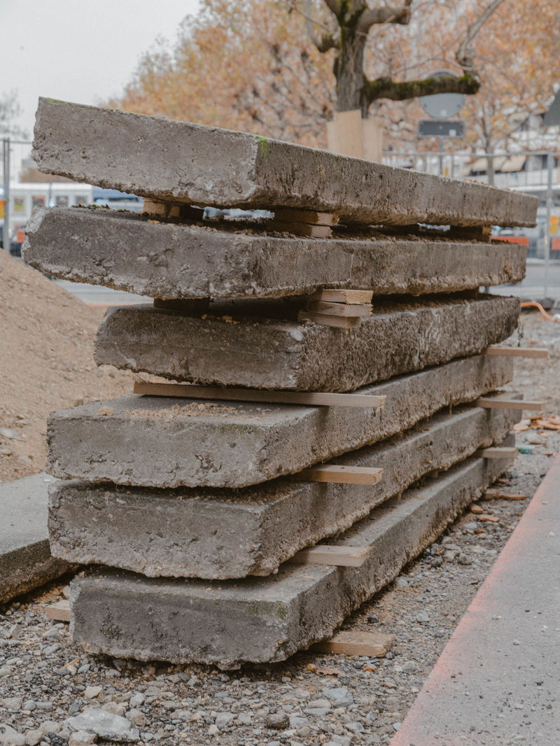 Pour construire ces bacs, le site s'est transformé en carrière urbaine. Les dalles de béton existantes au sol ont été sciées et réutilisées comme des briques. Les parpaings en ciment du couvert existant ont été démontés soigneusement et intégrés à ce calepinage. Des dallettes en pierre naturelle d'un chantier voisin ont été réemployées comme couvertine. Ainsi, le projet limite la consommation, le gaspillage des ressources et la production de déchets. Il valorise le savoir-faire de l’artisan.