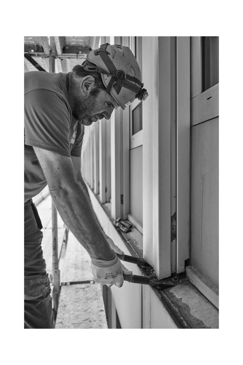 Die Sanierung der Aluminiumfassade ist eine Aufarbeitung der Geschichte, des Gebäudes und der Menschen die dort täglich ein und ausgegangen sind. Die handwerkliche Pflege ist eine Hommage an die Handwerker und die Menschen, die sich in Zukunft wieder vermehrt mit ihrem Wissen und Stolz um den Bestand kümmern werden.