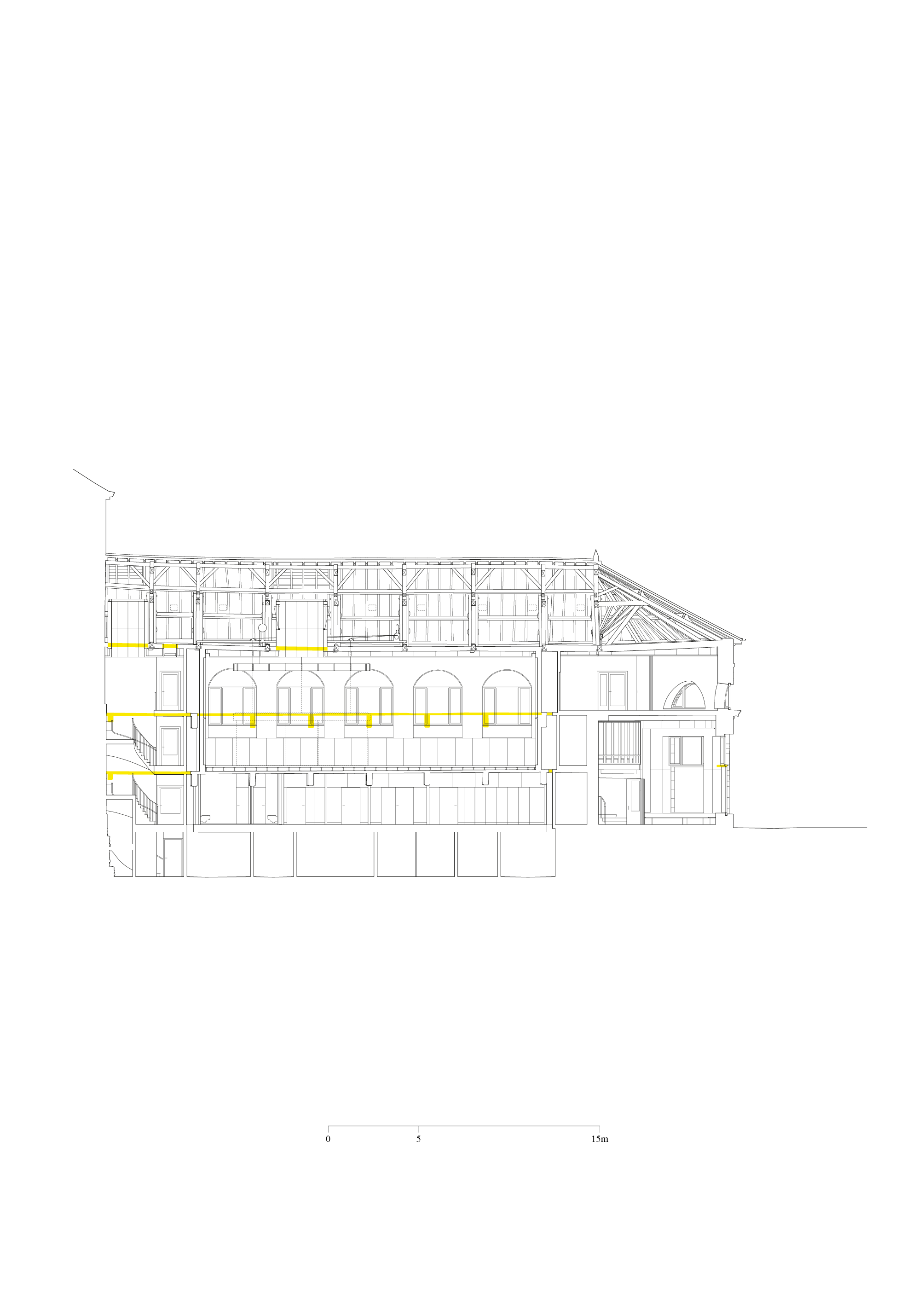 Le point de départ du projet est la compréhension de la configuration spatiale et constructive du bâtiment pour sa transformation en un bâtiment civique avec un minimum d’intervention lourde.