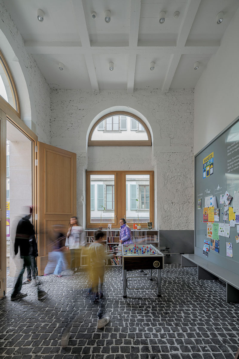 * Le projet se concentre sur une réutilisation adaptative d'un bâtiment historique, créant des espaces fonctionnels et polyvalents pour les différents besoins du quartier.