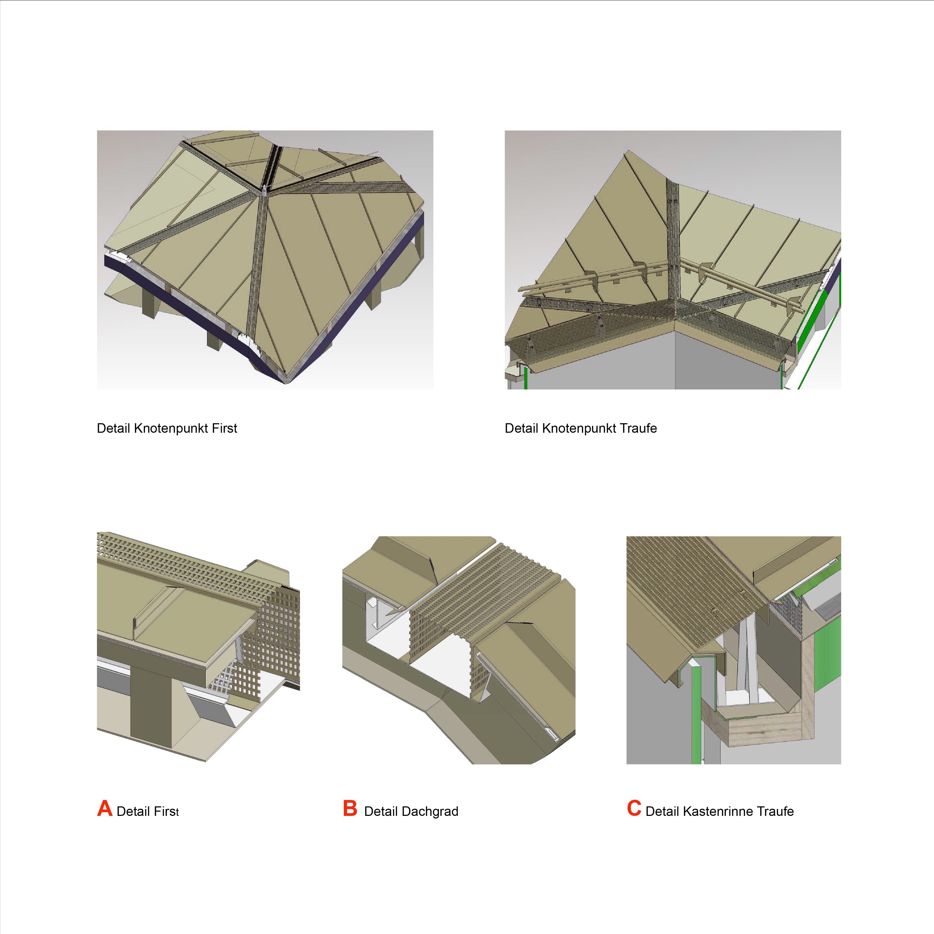 Ein wesentlicher Bestandteil zum Herbeiführen von Investitionsentscheidungen und zur Einhaltung der wirtschaftlichen Vorgaben der Bauherrschaft ist das Erarbeiten von 3D konstruktiven Detaillösungen im frühsten Entwurfsstadium. Diese Details konnten über die Auswahl von heimischen Baustoffen, einer präzisen Detailplanung, dem Einbezug von ausgewiesenen Fachleuten und Unternehmern eingehalten und weiterentwickelt werden.