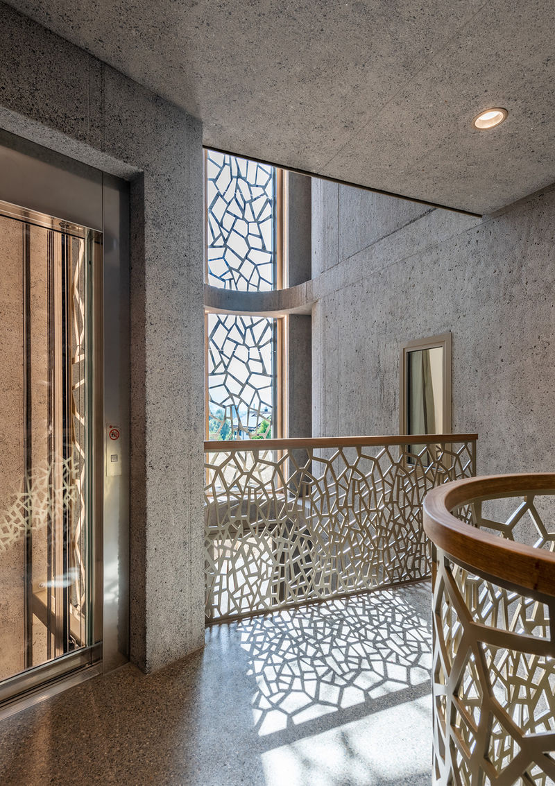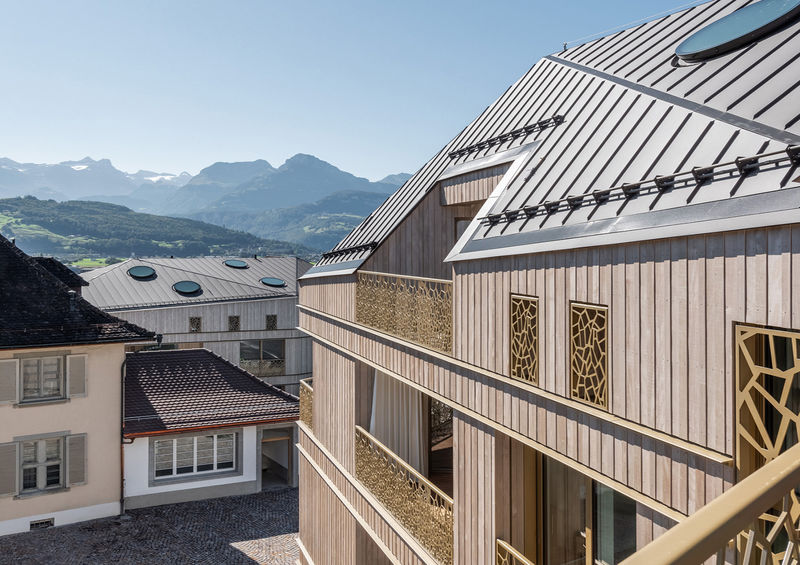 Durch die architektonische Gestaltung und Detaillösungen und durch den respektvollen Umgang mit den Materialien, entstehen zu den verschiedenen Tages- und Jahreszeiten Licht- Schattenspiele, welche ein charakteristisches Raumgefühl erzeugen. Durch Proportionen und Formgebung wird so eine unverwechselbare Bindung geschaffen, die für diese Überbauung charakteristisch ist.