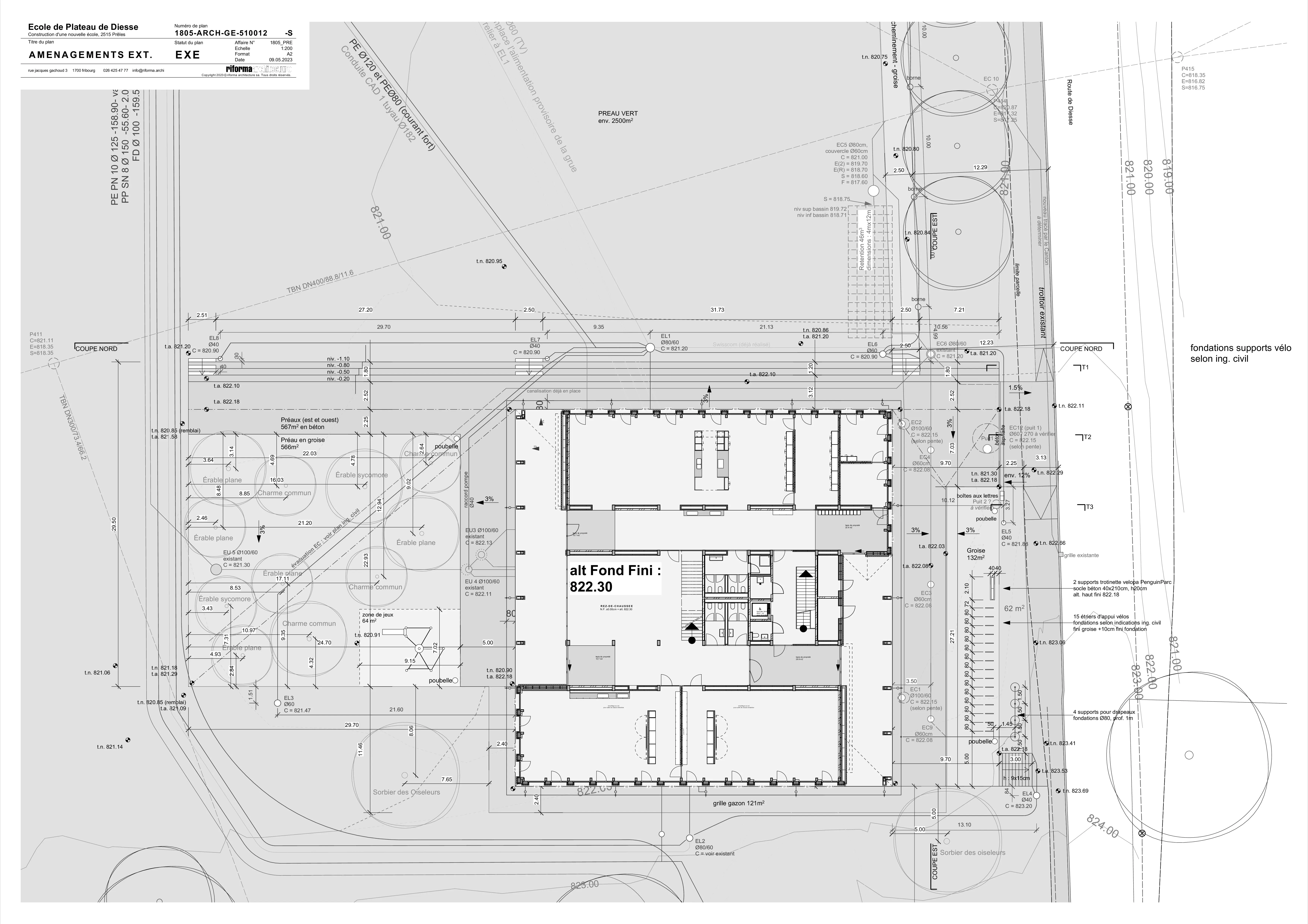 La nouvelle école cherche des liens avec l’esprit du lieu du Plateau en se référant au patrimoine bâti scolaire, mais aussi avec l’histoire du site naturel, un vallon inondable formant une patinoire naturelle en hiver. Le vallon partiellement comblé, est resté une place de loisirs, du match de foot informel entre amis de tous âges. La position de l'école préserve ce lieu de rencontre et offre un gradin sur cette scène publique avec peut-être par grand froid une patinoire naturelle retrouvée