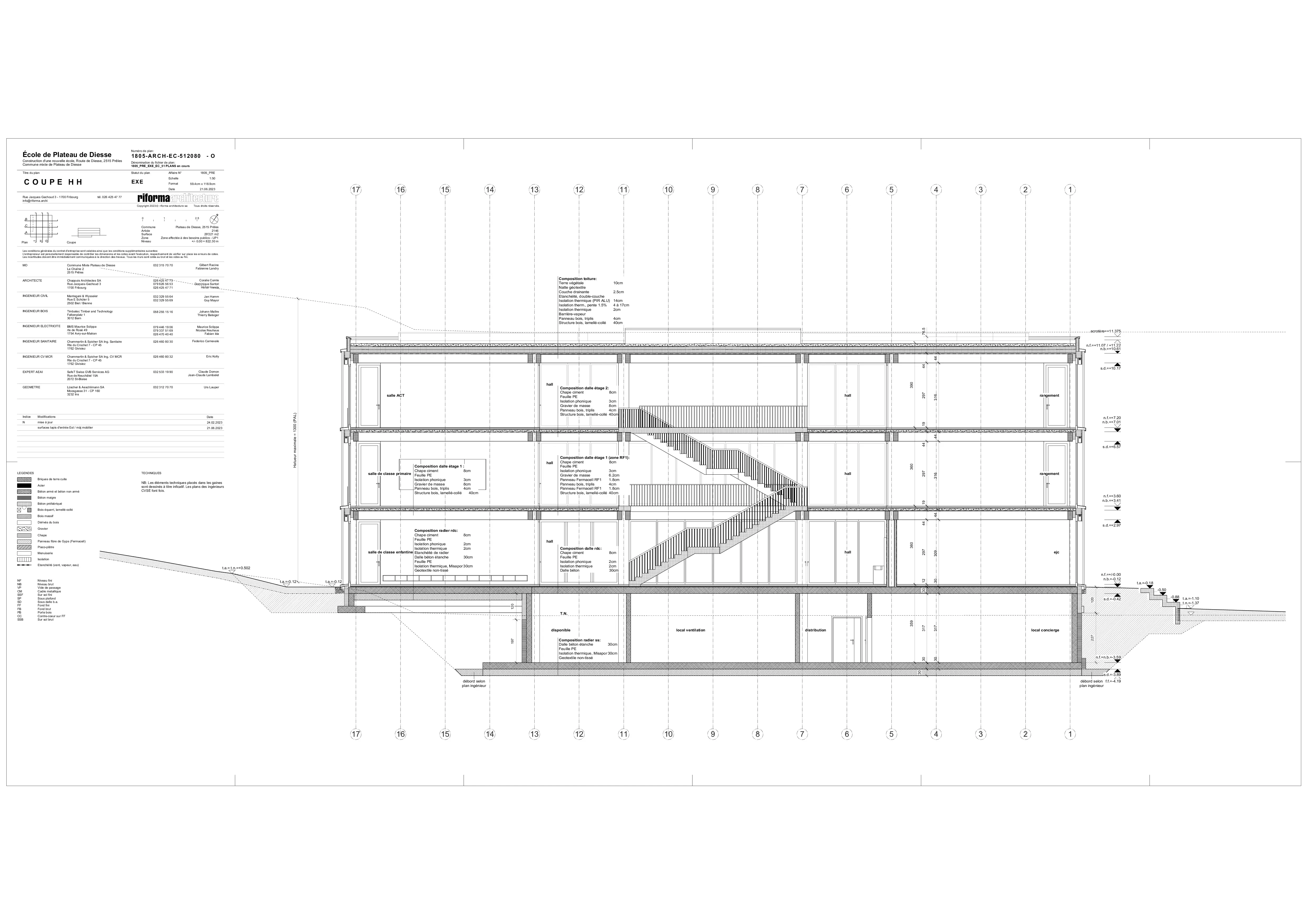 L’organisation modulaire est garante de l’unité de la construction et de la forme, elle est pérenne par son approche ouverte et souple lors du développement, de l’exploitation et du réemploi de ses composantes. Les espaces sont adaptés aux nouvelles pédagogies, ils offrent un continuum de lieu de différentes échelles, permettant de varier les activités, en groupe ou individuelles. La transparence est un principe fondamental de l’institution, elle donne un sentiment d’ouverture et d’accessibilité