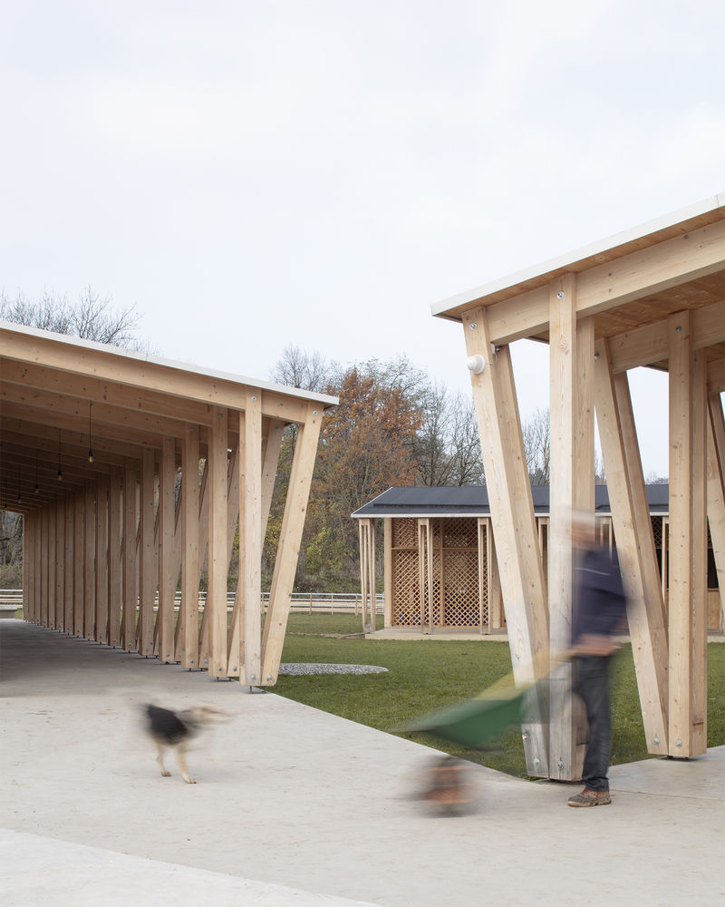 Les trois pavillons, connectés aux espaces extérieurs, sont accessibles à tous. Ils permettent des activités en intérieur ou en extérieur et la libre circulation des animaux.
