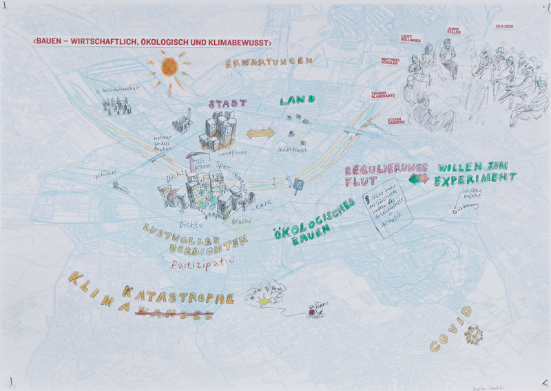 Die Position fordert dazu auf, die auf vermeintlich unerschöpflichen Ressourcen basierende Neubaukultur hinter uns zu lassen. Die Stadt soll stattdessen – wie viele Jahrhunderte zuvor – als Ressource begriffen werden und das Weiterbauen aus dem Bestand und aus lokalen Materialien erfolgen: Klimawandel impliziert Baukulturwandel!
