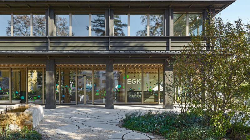 Der neue Hauptsitz spiegelt die Werte der EGK mit der Kombination von Schul- und Komplementärmedizin und den darin enthaltenen Eckpfeilern Bio, Psycho und Sozio architektonisch ab. Die Mitarbeiter arbeiten täglich in einem Umfeld, das diese Kernwerte in sich trägt und erlebbar macht: ein positives, gesundes Arbeitsklima in Verbindung zur Natur, in einer modernen und nachhaltigen Arbeitswelt.