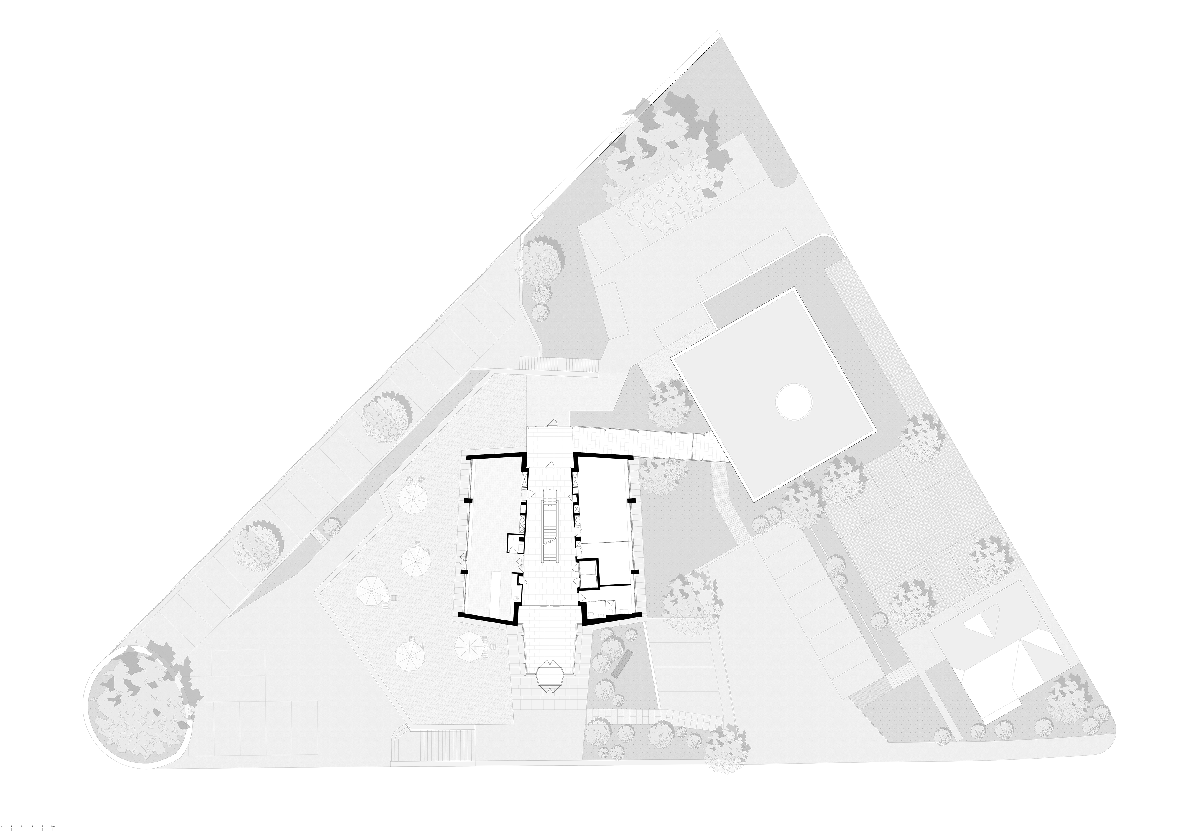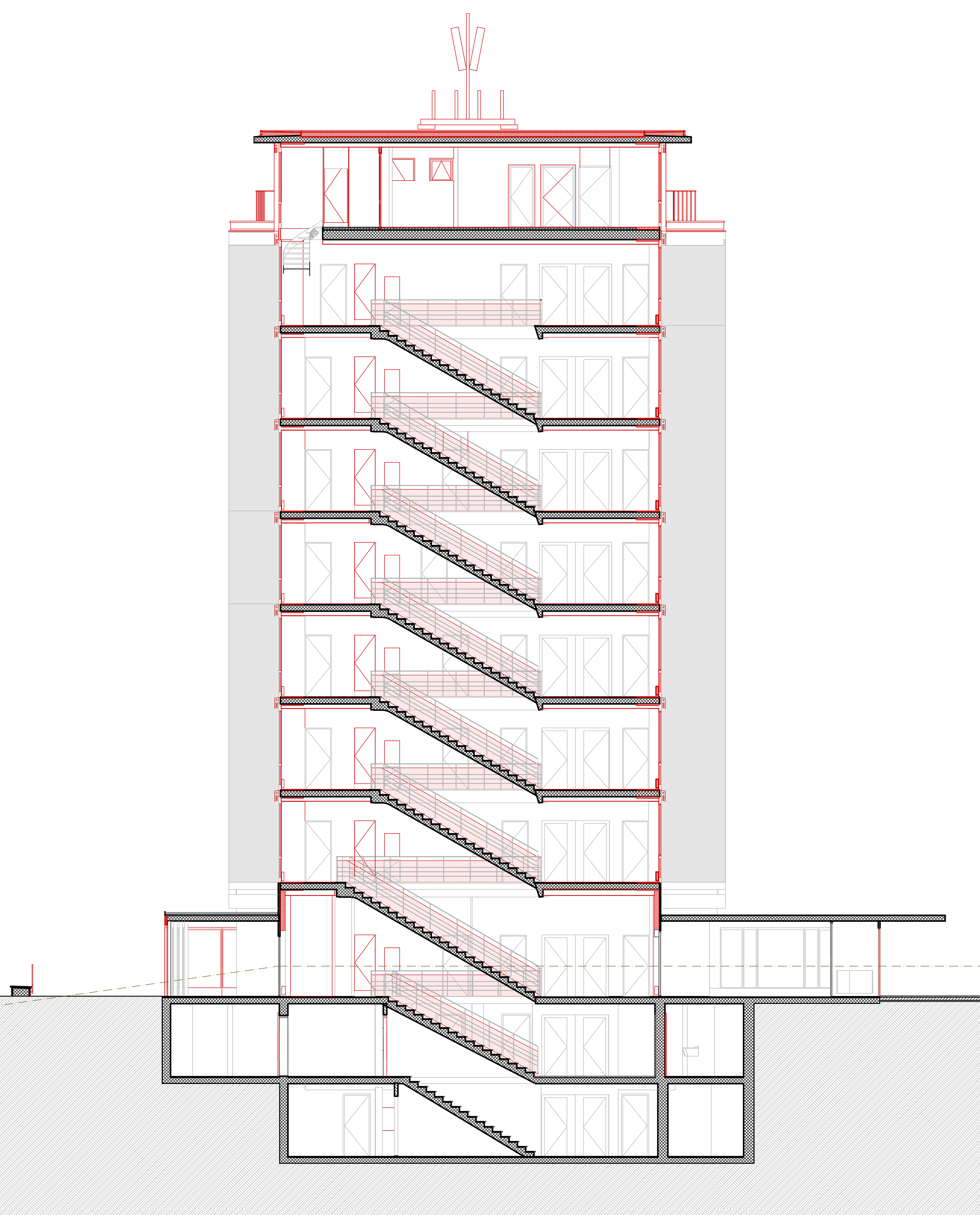 Das Hochhaus verfügt über ein öffentliches Café im Erdgeschoss und halböffentliche Dachterrasse im Attikageschoss. In diesem Spannungsfeld kann sich die eingemietete Sozialinstitution Lernwerk hervorragend entfalten. Das symmetrische Treppenhaus dient als Begegnungszone und führt zu einer sozialen Durchmischung. Sämtliche Geschosse sind gleichwertig und somit findet keine Hierarchisierung statt. Das Gebäude steht allen Personen offen und steht symbolisch für das Miteinander der Gesellschaft.