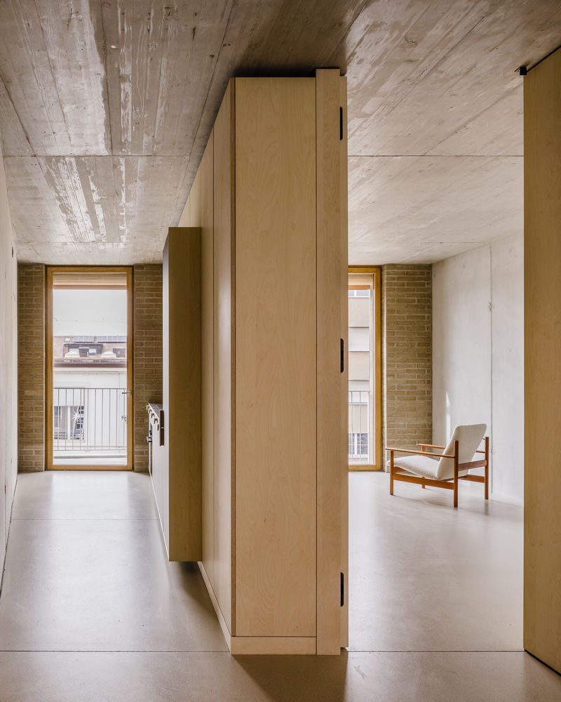 Das Haus bietet Vielfalt auf der Ebene flexibler Apartmenträume, die zwischen 2,5 und 4,5 Zimmerwohnungen variieren. Der Wohnungsmix kann in den kommenden Jahren dank einem Schaltzimmer je nach Wunsch verändert werden. Die Gemeinschaftsräume ermöglichen es den Menschen, sich überall im Haus zu treffen. In der Gemeinschaftsküche beim Marmeladekochen, auf der Dachterrasse für ein Grilltreffen oder im Treppenhaus beim Durchsuchen der gemeinsam genutzten Reduit-Räume nach einer Fahrradluftpumpe.