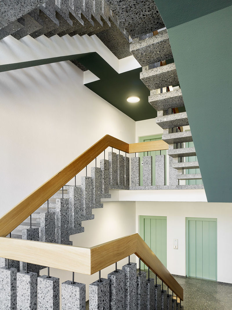Bei der Entwurfsarbeit ging es darum, mehr Material zu entfernen als neues hinzuzufügen. Eine relativ durchschnittliche Architektur aus den 1970er-Jahren gewinnt durch die Veränderung des räumlichen Konzepts und der Materialität einen ganz neuen Reiz, der auf der räumlichen Transparenz und der Patina der bisher verhüllten Betonstruktur basiert.