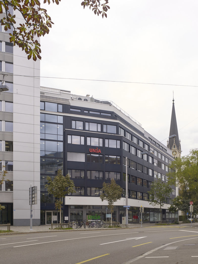 Das Bürohaus hat neu eine öffentliche Schalterhalle zur Beratung von Gewerkschafts- und Arbeitslosenkassenmitgliedern. Die Sichtbarkeit der Unia und die Niederschwelligkeit ist dadurch stark erhöht. Das ganze Haus ist hindernisfrei zugänglich inklusive der neuen Dachterrasse. Diese bietet einen neuen Aussenraum für Begegnung, Arbeit oder festliche Ereignisse.