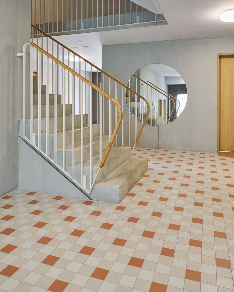 Etant situé en zone de développement, les logements sont contrôlés par l’Etat avec un rendement et des coûts plafonnés. Le projet a été réalisé en traditionnel avec des entreprises locales et des circuits courts. Le choix des matériaux répond à des standards de durabilité dans une vision à long terme tout en gardant une simplicité dans les installations, qui restent low tech.