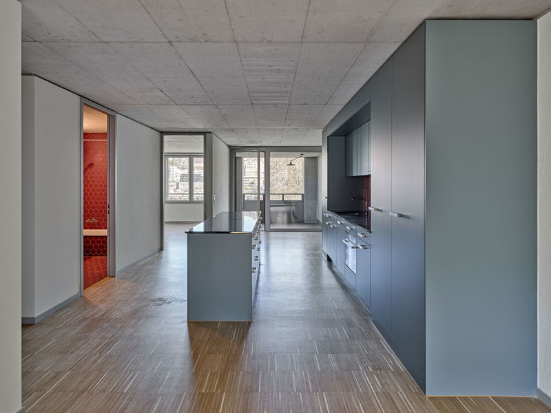 Dank Leichtbau-Wohnungstrennwänden, Systemtrennung und Verzicht auf eine mechanische Lüftung kann sich die Nutzung mit geringem wirtschaftlichen und energetischen Aufwand neuen Bedürfnissen anpassen. Lärmgeschützte Aussenräume ergänzen die Lärmschutzgrundrisse und die gut belichteten «durchgesteckten» Wohnungen. Das Gebäude ist hindernisfrei gebaut und die Nähe zur Tramhaltestelle, zum HB sowie der Verzicht auf Parkplätze zugunsten von Fahrradräumen fördern eine umweltfreundlichere Mobilität.