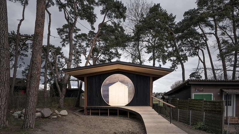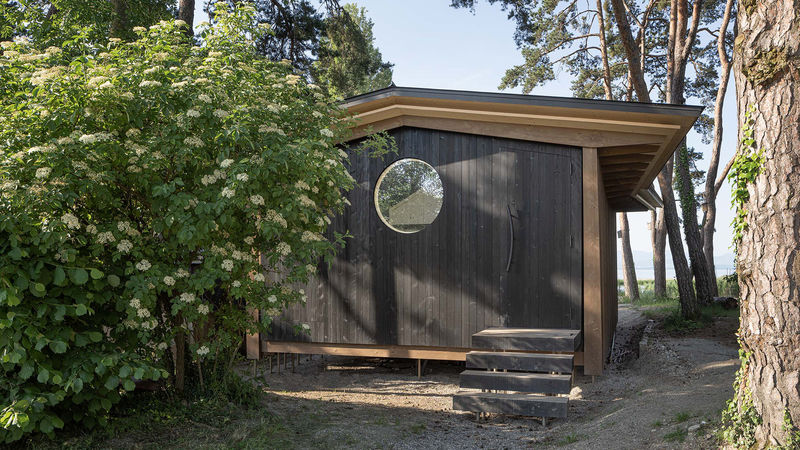Le projet s'intégrèrent dans l'esprit du rivage par sa petite échelle, mais se fond aussi dans le front des petits chalets du bord du lac. Son architecture joue avec le contexte en réinterprétant les codes du vernaculaire. L'aménagement intérieur a été conçu sur mesure et de façon à occuper l'espace de façon rationnelle et optimisée, à l'image d'une cabine de bateau.
