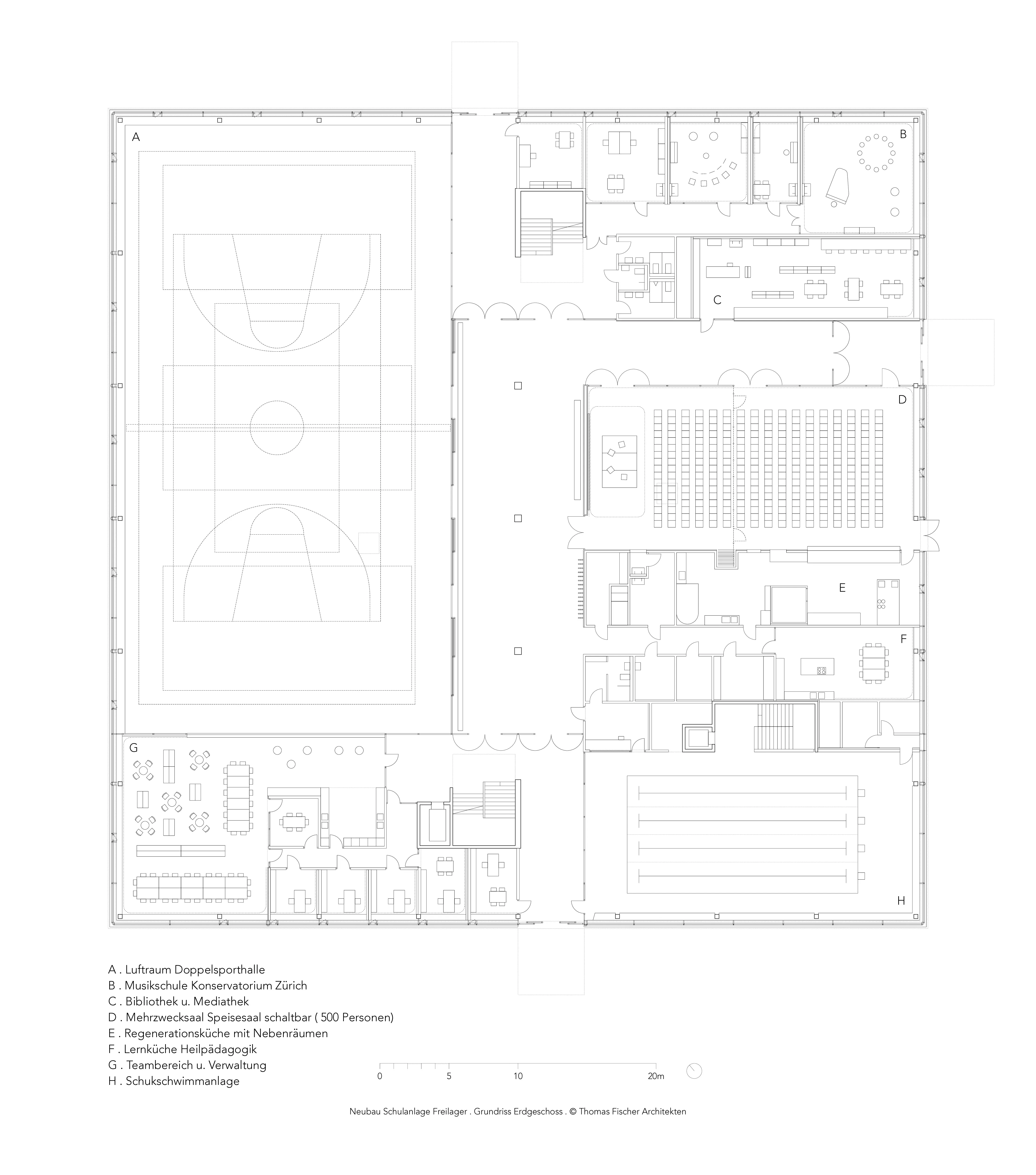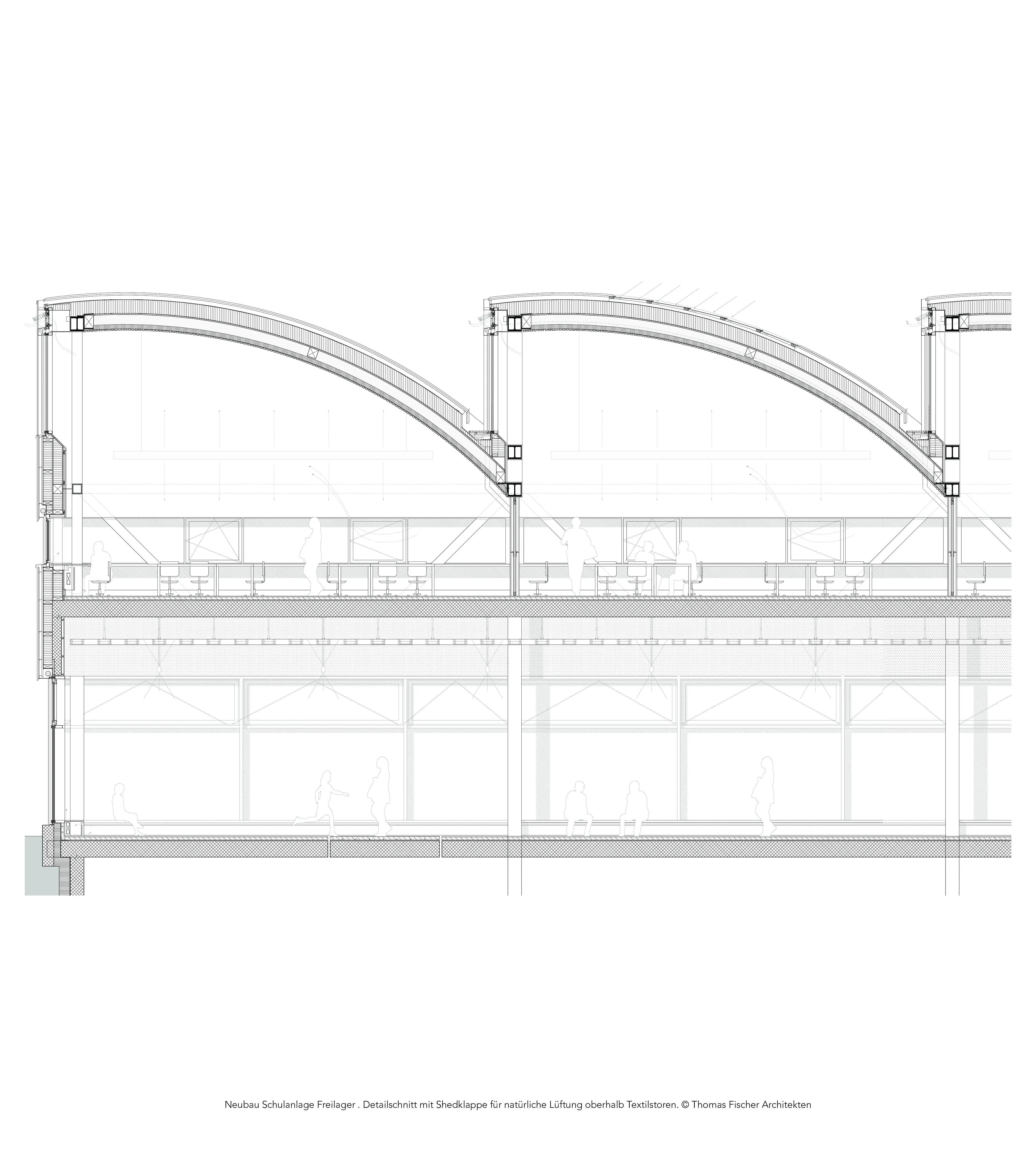 Die Schulanlage Freilager in Zürich wurde von Beginn an als Ganztagsschule geplant. Das ist neu. Ab dem Schuljahr 2023/24 werden auf Basis eines Volksentscheids alle Schulen der Stadt etappenweise in Tagesschulen überführt. Hierfür braucht die Stadt architektonische Referenzprojekte wie die Schulanlage Freilager, die hohe baukulturelle und pädagogische Qualitätsstandards setzt. Mehr noch als die Zweckbestimmung von „unterrichten und unterrichtet werden“, geht es darum, wie der Lebensraum Schule baukulturell so ausgestaltet werden kann, daß Bewohnerinnen und Bewohner an fünf ganzen Tagen der Woche eine Schulumgebung vorfinden, die sie als wohnlich bezeichnen möchten. Es geht um architektonische Qualitäten eines zweiten Zuhauses, das eine überfamiliäre Gemeinschaft dazu befähigt, zusammen zu leben und zusammen zu lernen. Die Atelierschule von Thomas Fischer Architekten bietet inspirierende Räume - reich an Tageslicht und natürlich belüftet - für nachhaltige und integrative Schulkultur.