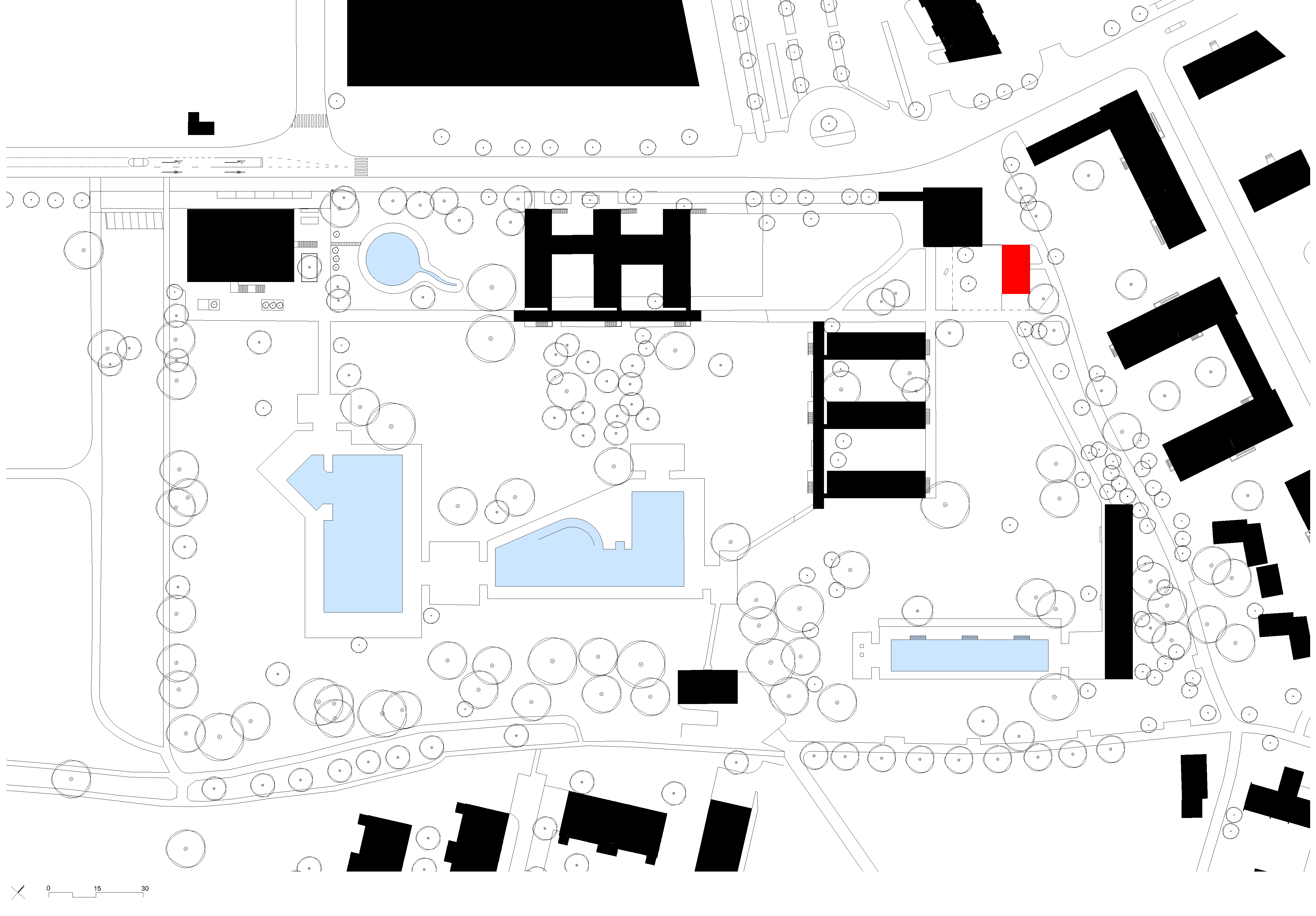 Im schonenden Umgang mit denkmalgeschütztem Bestand gilt es, die Kompatibilität von Bau und neuer Nutzung zu prüfen. Der ursprüngliche Auftrag wurde daher von den Architekt*innen hinterfragt und das Abwartshaus als alternativen Standort für das Jugendzentrum vorgeschlagen. Es war bereits ganzjährig bewohnt worden und eignete sich dank seiner Lage in unmittelbarer Nähe des ehemaligen Jugendzentrums, dem direkten Zugang von ausserhalb des Badgeländes und dem eigenen Garten für das neue Programm.