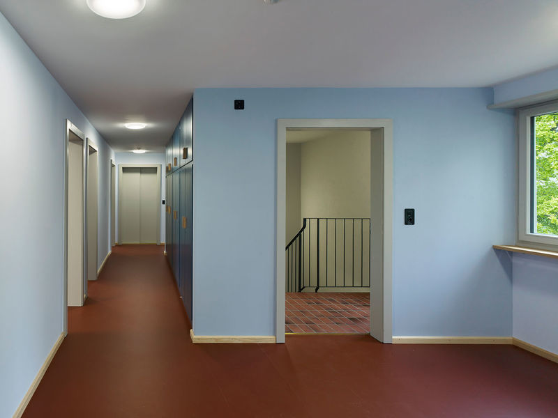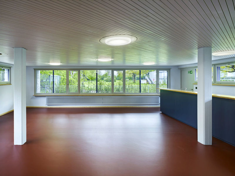 Das Jugendzentrum als niederschwelliges und inklusives Angebot für Jugendliche jedes Geschlechts, verschiedener sozialen Schichten und unterschiedlicher Konfessionen bekam mit dem Umzug ins ehemalige Betriebsgebäude grosszügige Räume und einen eigenen Garten. Die Räume im Erdgeschoss stehen zudem dem Quartier für Veranstaltungen - Familienfeste, Kindergeburtstage, Kurse etc. - zur Verfügung. Die freundlichen Farben und Materialien vermitteln den Nutzer*innen ein Gefühl von Werschätzung.