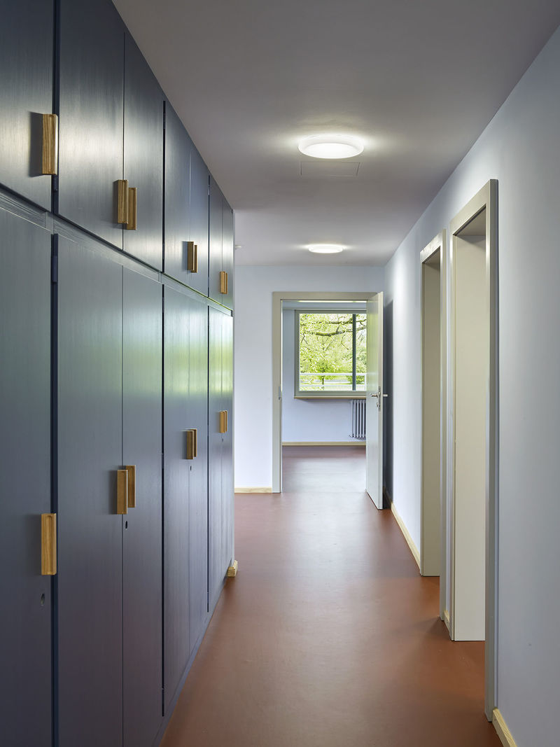 In diesem Projekt wurde bewiesen, dass beim Umgang mit dem Bestand aus den 60er Jahren die Sanierung und energetische Optimierung eine valable Alternative zu Abriss und Ersatz darstellt. Mit der innenliegenden Dämmung der Fassaden, dreifachverglasten Holzfenstern und neuen Eingangstüren wurden aktuelle energetische Anforderungen erfüllt. Eine Erdsonde im Garten ermöglicht die Wärmeerzeugung über eine Wärmepumpe und das ehemalige Kiesdach wurde zu einem gedämmten Gründach mit PV-Anlage umgebaut.